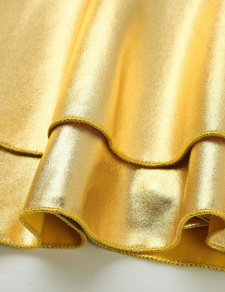 - Shiny metallic ruffled mini skirt, simple but eye-catching piece.