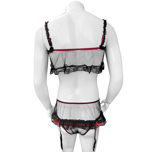 Sophisticated, sissy, sexy, romantic and fun. This sexy lace lingerie set will definitely bring out the sissy in you! It is the perfect outfit to wear when entertaining your Master or Mistress.